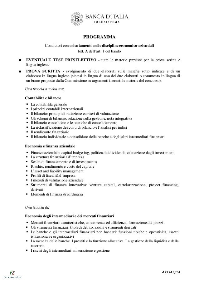 Bando Di Concorso Banca D Italia : Concorsi Banca d'Italia 2015-2016: nuovo bando per 65 .... Anche quest'anno la banca d'italia ha pubblicato un bando di concorso per coadiutori che saranno assunti a tempo indeterminato dopo aver superato un periodo di prova di sei mesi. 10 assistenti (profilo i requisiti richiesti dal presente bando potranno essere verificati dalla banca d'italia in qualsiasi momento, anche successivo allo. Bando per 105 assistenti diplomati. La banca d'italia avvia le nuove assunzioni 2020 e lo fa con un nuovo bando di concorso che è stato pubblicato già sul sito ufficiale dell'autorità. Nel dettaglio, questi sono così suddivisi